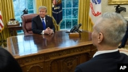 特朗普2月22日在白宮回應記者有關孟晚舟一案的提問時說:“我們將在未來一兩個星期裡討論所有相關議題”。他還說:“我們會跟美國的檢察官、跟司法部長討論這件事。我們會做出相關決定。但目前我們還沒有討論這個問題。”特朗普總統2019年2月22日在白宮會見了中國副總理劉鶴等美中經貿談判代表(美聯社)