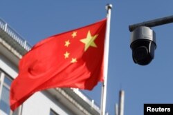 北京市區如臨大敵,緊縮各項管控規範。例如,從12月15日起,北京必遊景點“天安門廣場”將改採預約制入場制度,無論散客或團客都必須使用手機APP或登錄天安門地區管委會的網站,來預約未來10日內的參觀旅遊行程,而且只能在升旗、上午、下午或降旗等4個時段中擇一入場。北京街頭飄揚的一面中國國旗旁的一個監控攝像頭。(2021年11月25日)