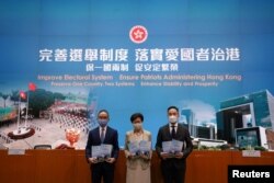 香港行政長官林鄭月娥星期二稱讚中國人大通過香港選舉制度修改案。她“堅信通過完善選舉制度和實行'愛國者治港'”,社會過度政治化和香港內部的分裂“可以得到有效緩解”。