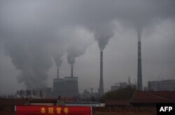 資料照:中國山西大同附近的一座燃煤火力發電站的煙囪在冒煙。(2015年11月19日)