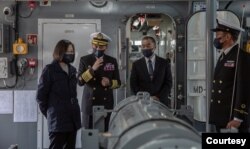 台灣總統蔡英文星期五(1月14日)從台北前往高雄,主持台灣海軍一九二艦隊第一、二佈雷艇中隊成軍典禮。