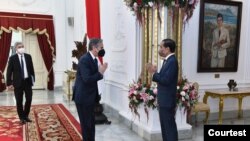 布林肯星期一在與印尼總統佐科·維多多見面之後,星期二與印尼外長蕾特諾會晤,雙方簽署了合作備忘錄。美國官員說,印尼是全球第三大民主國家,美國和印尼的戰略夥伴關係,基於許多共享的核心價值。在布林肯訪問期間,美國與印尼官員討論如何強化雙邊合作,共同因應對民主、人權的挑戰,以及氣候變化危機、與新冠病毒大流行病。