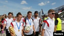 世界盃冠軍德國隊兩日前在巴西擊敗阿根廷後已經返回德國。