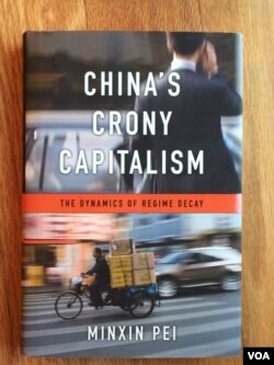 裴敏欣的新書《中國權貴資本主義—政權衰敗的動態》(China's Crony Capitalism—the Dynamics of Regime Decay)封面(2016年10月,美國之音斯洋拍攝)。