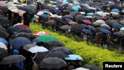 “林鄭月娥必須下台,”黃之鋒對記者說。黃是2014年雨傘運動的領導人之一,因與抗議活動有關的指控被判入獄兩個月。