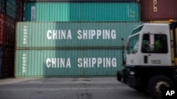 然而,部分美國商業團體對要求他們離開中國的要求深切關注,質疑切斷與中國的關係是否現實。資料照:在喬治亞州薩瓦納港,一輛卡車駛過中國海運集團的集裝箱。(2018年7月5日)