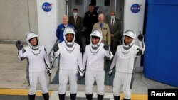 載有三名美國宇航員和一名日本宇航員的龍飛船美國東部時間星期一(2020年11月16日)晚上抵達國際空間站,並與國際空間站完成對接。運載四名宇航員的龍飛船2020年11月15日晚在肯尼迪太空中心騰空而起(路透社)