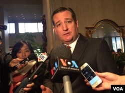 德州聯邦參議員克魯茲會見蔡英文後接受媒體採訪(2017年1月8日,美國之音李逸華拍攝)