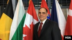 她對美國之音說:“我認為美國可以向中國表明我們的底線是什麼,闡明中國的哪些作為破壞了穩定,也許我們甚至可以找到雙方都後退一步的方式,以防止進一步加劇緊張局勢。比如在台灣海峽,中國可以同意不派遣他們的戰機越過海峽中線,而美國可能同意我們不會在台灣的某些範圍內派出B-52或B1轟炸機。”美國智庫傳統基金會負責國家安全與外交政策研究的副總裁卡拉法諾(James Jay Carafano)(美國之音黎堡攝)