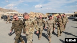 美國與塔利班今年2月達成一項具有里程碑意義的協議,外國軍隊會在2021年5月前離開阿富汗,塔利班則答應與阿富汗政府談判達成永久停火和權力共享協議。美軍中央司令部司令麥肯錫上將(General Kenneth McKenzie)2019年4月5日視察駐阿富汗美軍(美國國防部)
