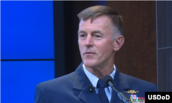 美國海警隊司令楚孔夫特上將2016年11月29日在布魯金斯研究院發言” (美國之音黎堡攝)