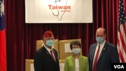 歐克斯福德說,他對台灣的慷慨捐贈非常感謝,“明顯的是,這些口罩可以拯救性命”,而保護生命也是退伍軍人協會正在做的工作,“當我們想到今天世界的局勢,美國、台灣,以及不幸的是香港,都面對共同的對手,我只想確保我們都能理解我們的同盟、友誼和關係的價值。”台灣駐美代表蕭美琴(中)與美國退伍軍人協會會長歐克斯福德(左),佛羅里達州聯邦眾議員約霍在捐贈口罩儀式中合影(美國之音鍾辰芳拍攝)