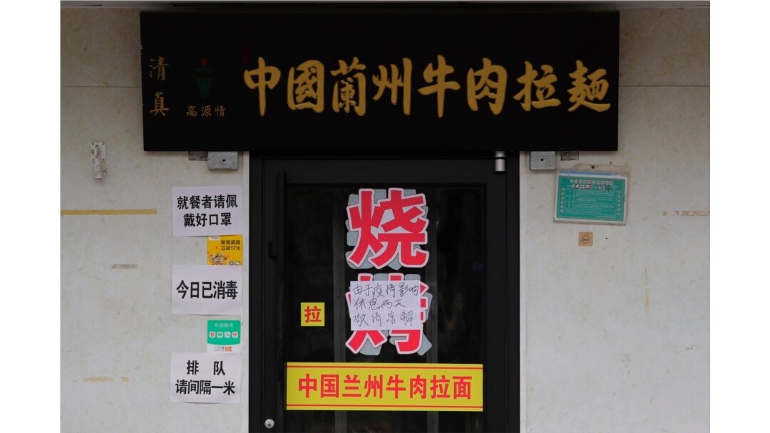 北京一家因新冠病毒疫情反撲而關門兩天的餐館。 (2020年6月23日)